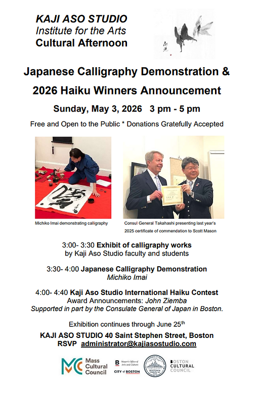 Kaji Aso Studio is a non-profit, tax exempt 501 (c) (3) organization. Kaji Aso Studio does not discriminate on the basis of race, color, creed, sex, national origin, age or physical handicap.